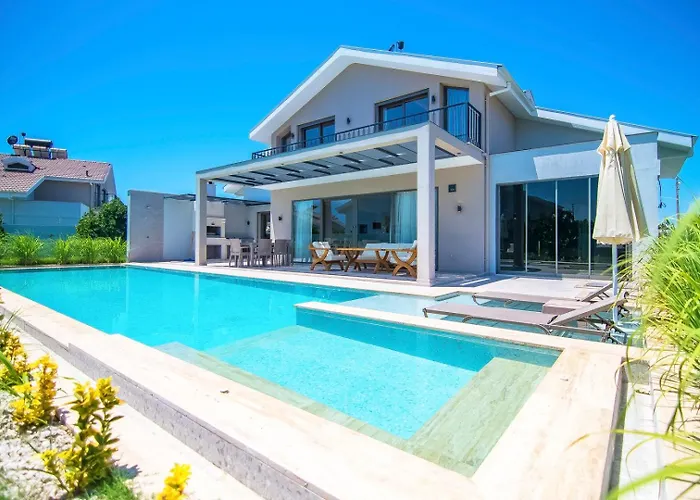 A Plaja Yakin Lueks Villa Fethiye está localizada a aproximadamente 10 minutos a pé da Praia Calis e oferece aos hóspedes a oportunidade de aproveitar a noite no terraço com piscina.